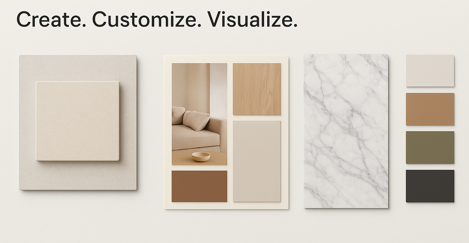 Visualize combinations of materials, colors, and textures to see how everything works together.